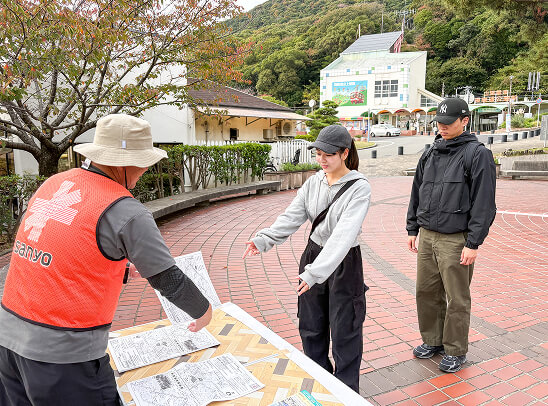 オレンジ色のビブスを着た山陽ハイキングスタッフの指示に従って整列して待ちましょう。