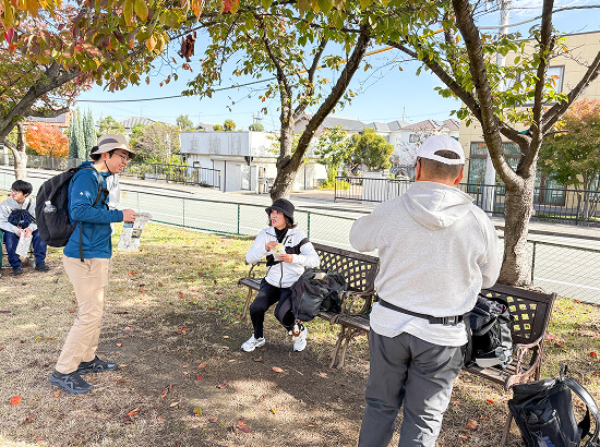 集合場所は駅から徒歩圏内の公園や神社が多く、駅の改札口から「道標」と呼ばれる矢印で案内しています。食べ物・飲み物は集合までに準備しておきましょう。また、トイレも駅で済ませておくと安心です。