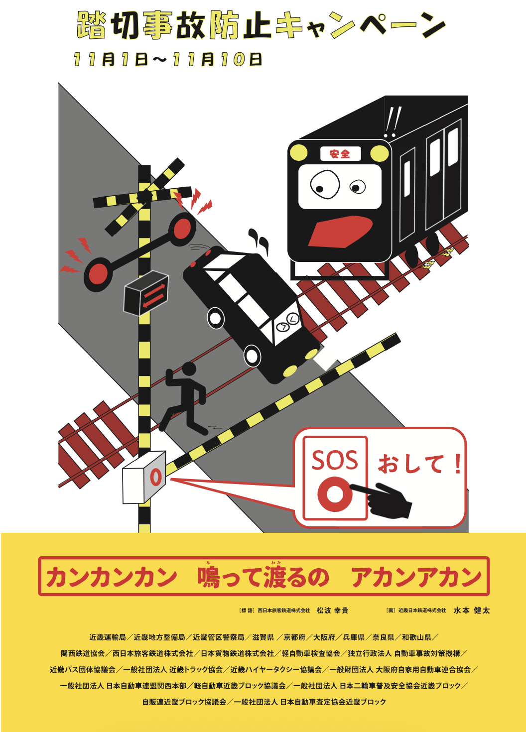 - 踏切内に閉じ込められている人や自動車等を発見された時は、すぐに非常ボタンを押してください。