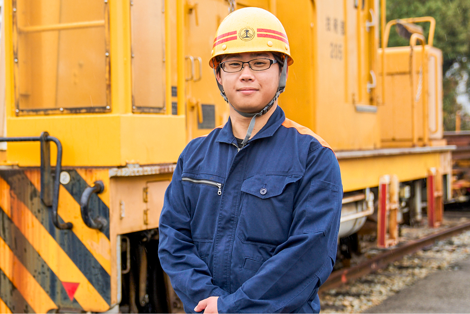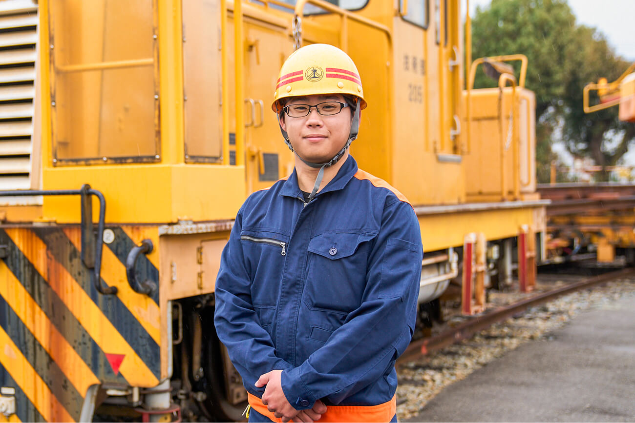 - 高等学校を卒業後、施設部 工務課へ配属され、軌道や土木構造物の保守点検を担当。主な業務として、線路の点検、レールやまくらぎの交換作業、それに伴う工事用車両によるレール・まくらぎなどの材料運搬、土木構造物検査などを経験。