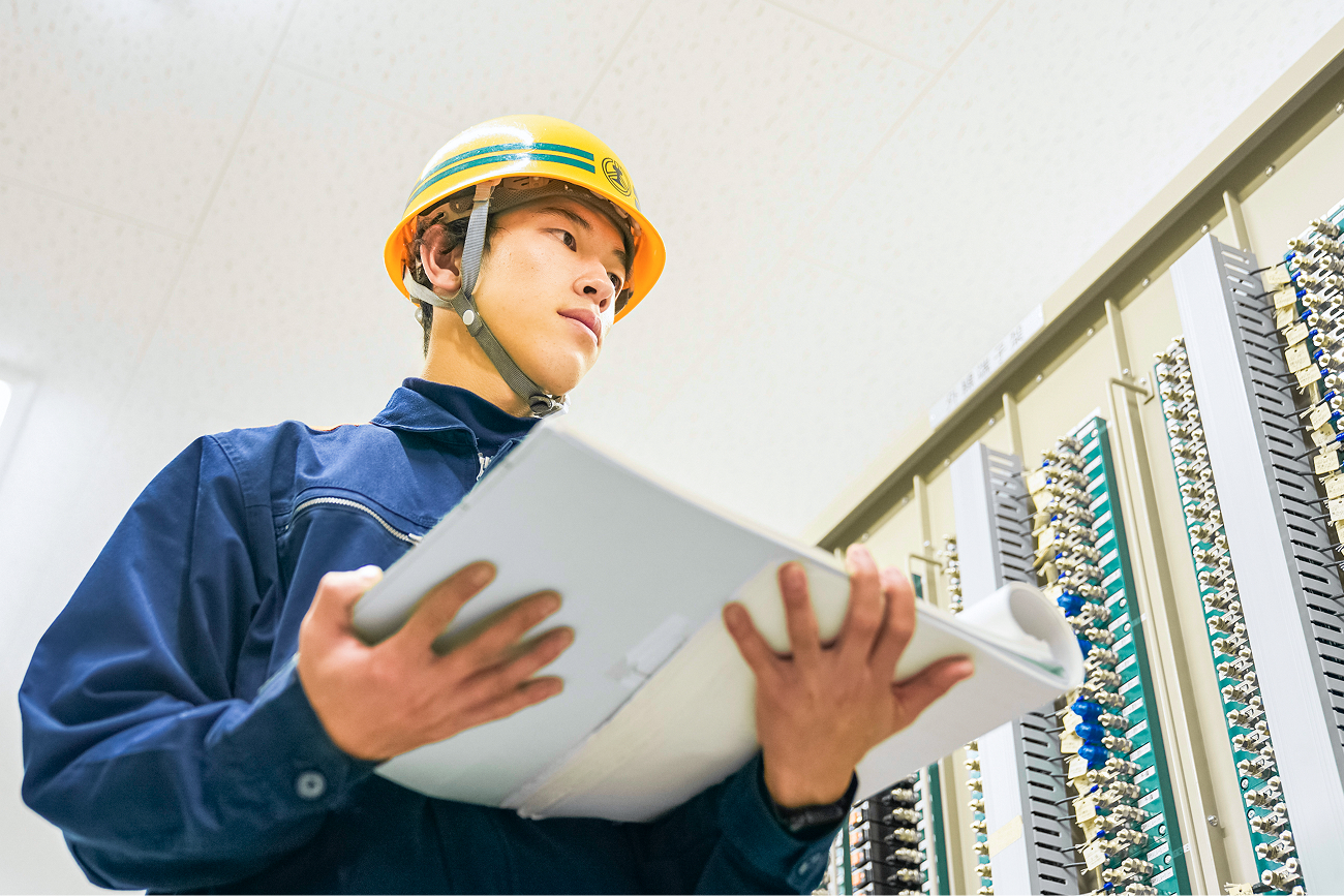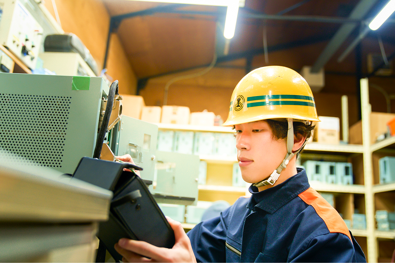 高等学校を卒業後、施設部 電気課へ配属され、電気設備の保守、点検を担当。